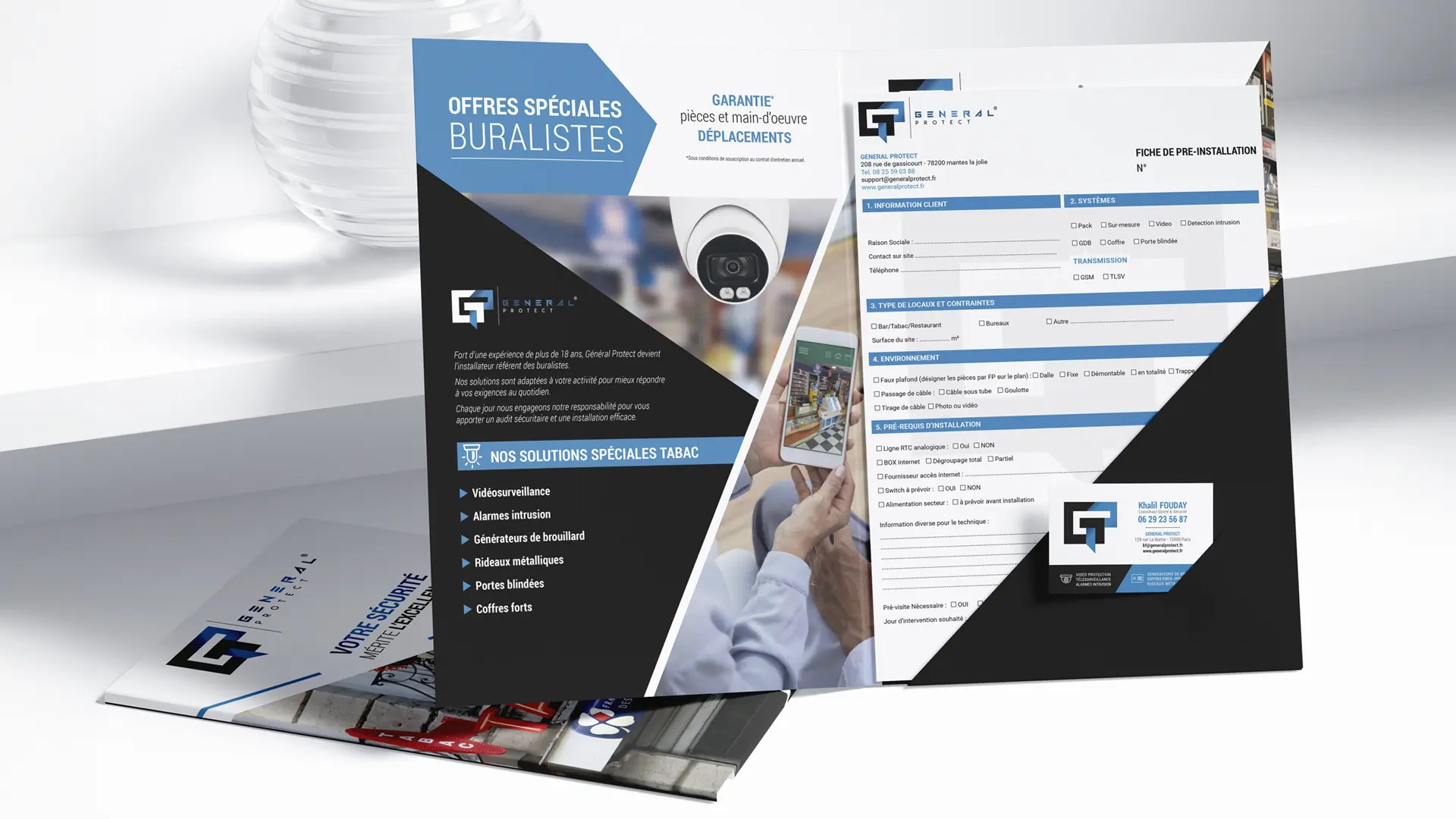 Pour valoriser cette expertise, General Protect m’a confié la création de son identité visuelle et de ses supports de communication imprimés.